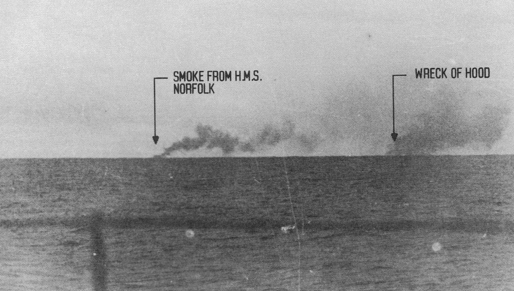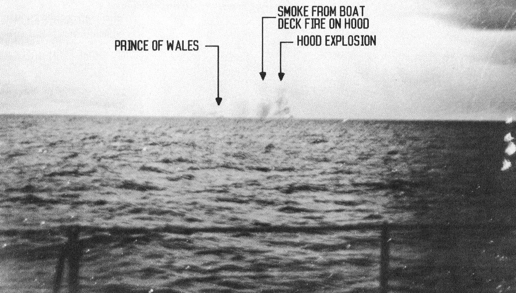 Hundreds of eyes watched as Hood approached her end. German eyes watched her through telescopes and periscopes aboard the Bismarck and Prinz Eugen. British eyes watched from the cruisers many miles away. Prince of Wales' helmsman and commanders were watching her to ensure that proper position was maintained. And because she was flag, the signalmen aboard Prince of Wales were watching her intently. Most importantly, the entire population of the port side of Prince of Wales, on the disengaged side and no doubt feeling a little cheated at missing the "real action," had little else to do but watch the giant battlecruiser perform. Here, reproduced as much as possible in the words of the witnesses themselves, is what they saw.