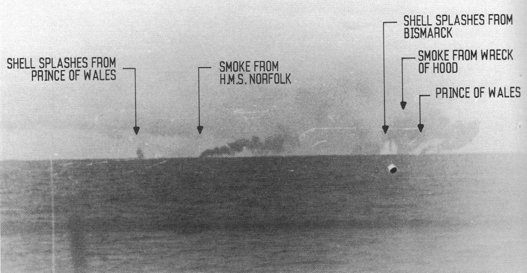 Curiously, the fire had nothing to do with Bismarck's gunnery - instead it had almost certainly been caused by a hit from Prinz Eugen who was also firing at the leading British target. Like many other British observers, Wormersley had accidentally confused the fall of shot from Bismarck and Prinz Eugen. From the German cruiser's bridge, her captain watched through binoculars with Commander Busch, a German journalist, as Prinz Eugen's second salvo struck home, and listened as Commander Jasper, the gunnery officer confirmed it. Within two minutes of opening fire, Prinz Eugen's gunners had drawn blood.